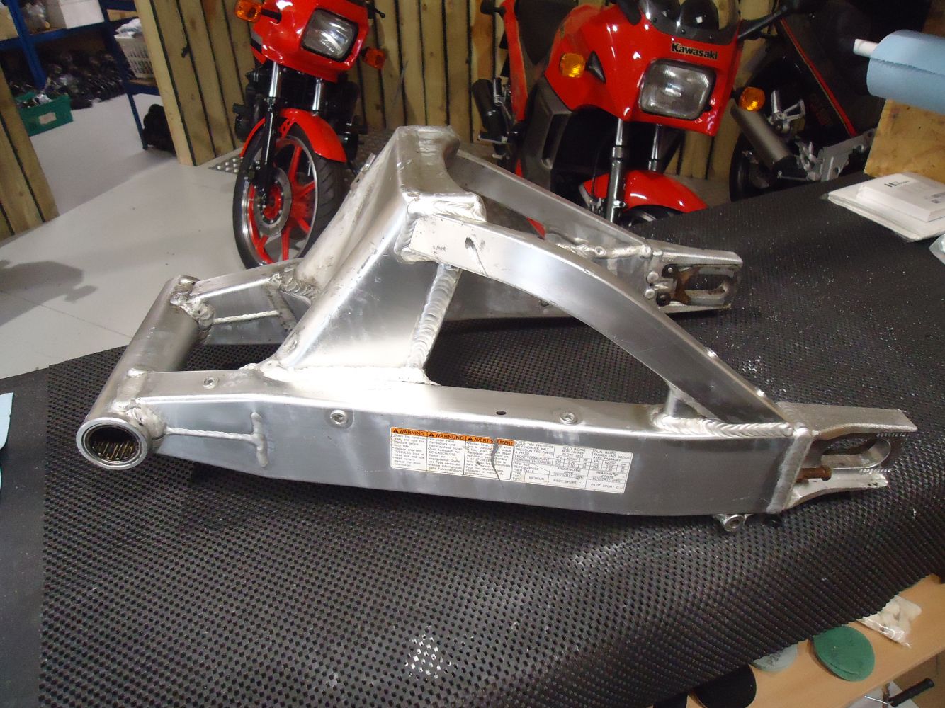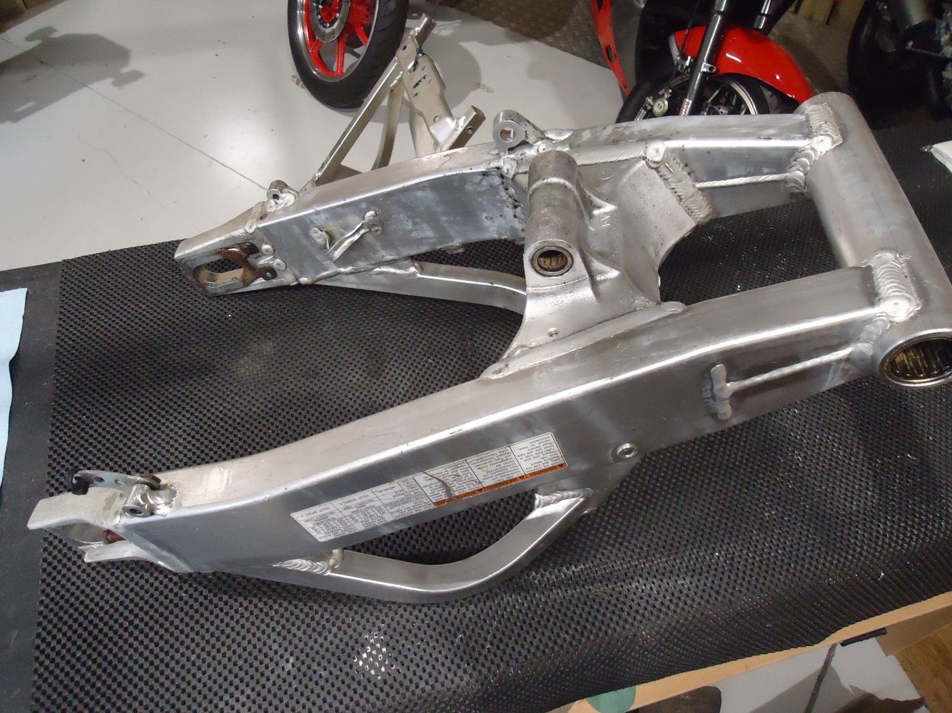 Suzuki GSXR750 Swingarm, good see pictures for overall condition, for K1-K3 models, no cracks or splits, some surface marks as pictured, close up of damage in last picture also fits GSXR600 K1-K3