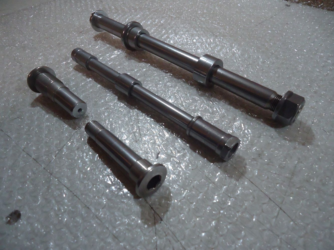 Honda VF 750F Front & Rear Wheel Spindles & Axle Bolts, good been vapour blasted & tumble polished, see pictures for overall condition, fits all years