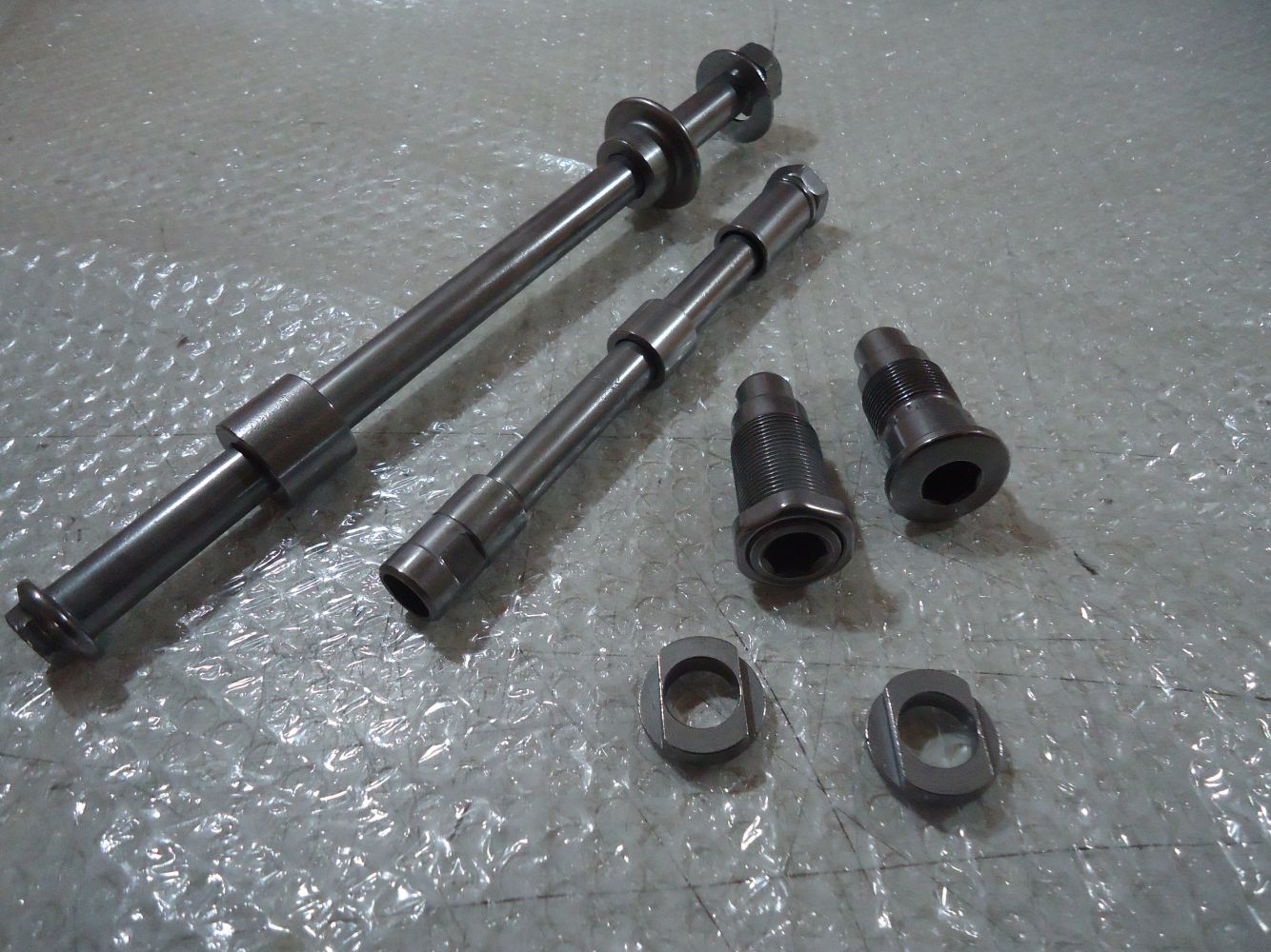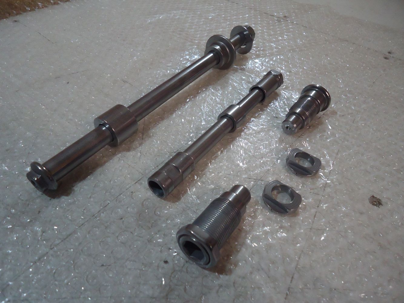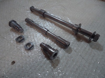 Honda VF 500F Front & Rear Wheel Spindles & Swingarm Axle Bolts, good been vapour blasted & tumble polished, see pictures for overall condition