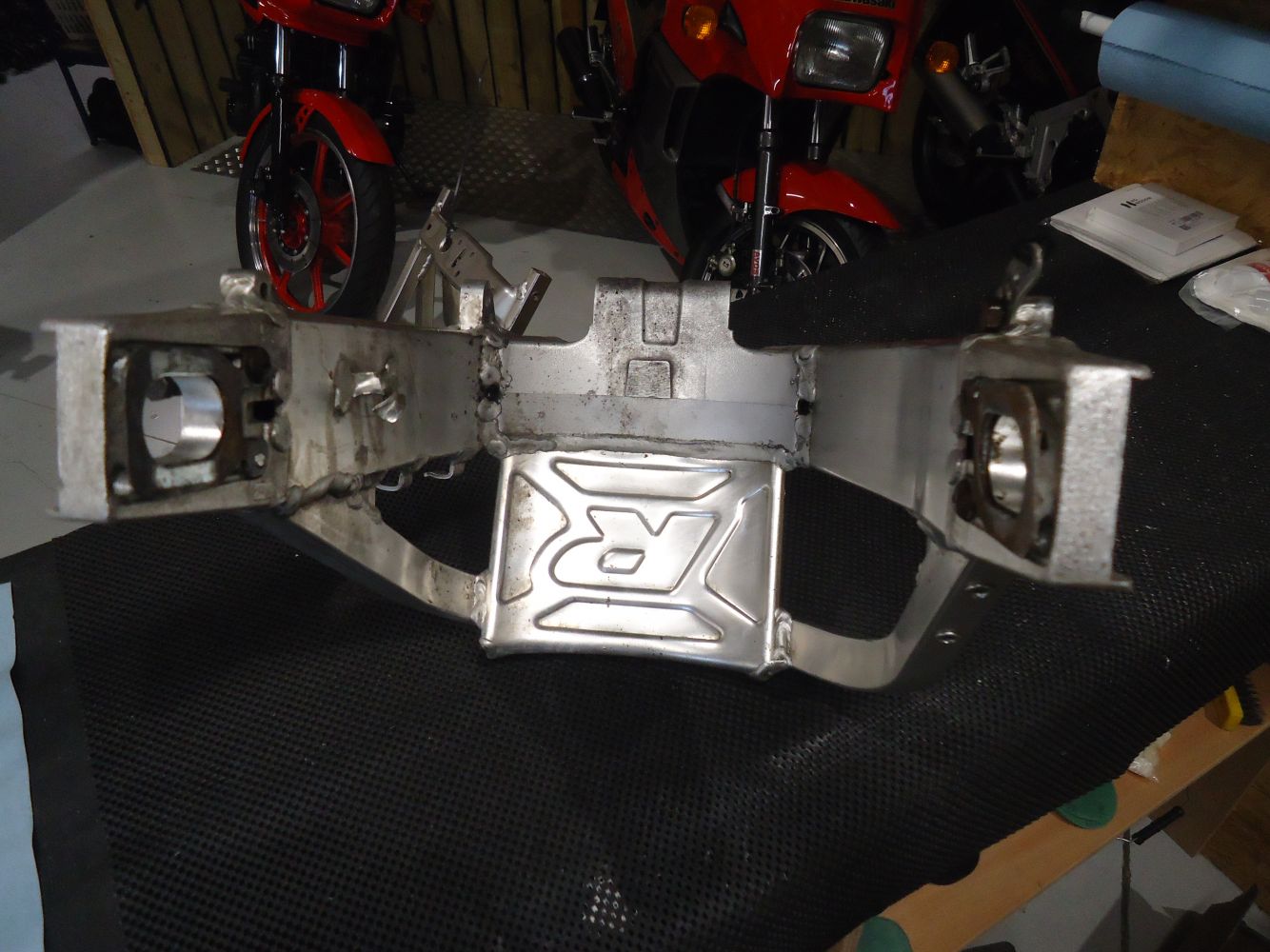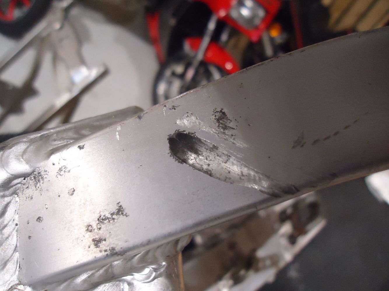 Suzuki GSXR750 Swingarm, good see pictures for overall condition, for K1-K3 models, no cracks or splits, some surface marks as pictured, close up of damage in last picture also fits GSXR600 K1-K3