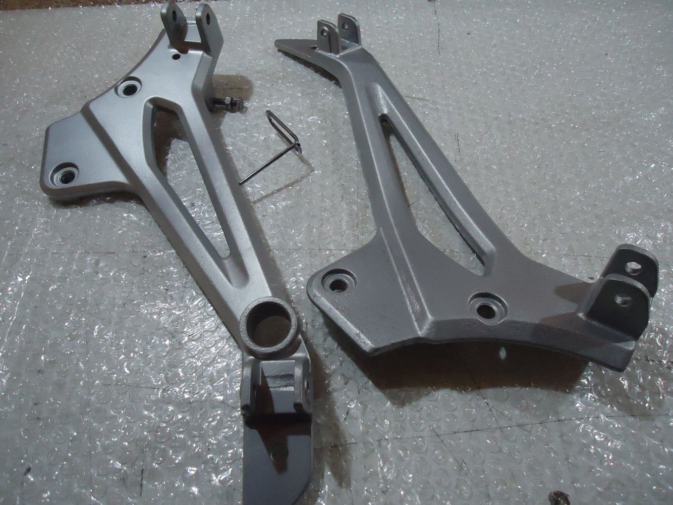Kawasaki ER500 Left & Right Footrest Hanger Brackets, good been vapour blasted, see pictures for overall condition & any age related marks / pitting, from a 2001 model