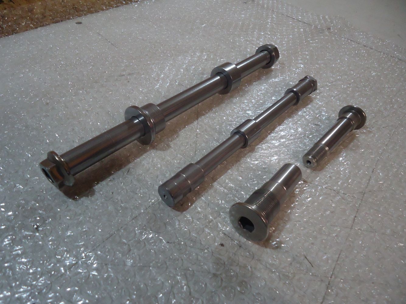 Honda VF 750F Front & Rear Wheel Spindles & Axle Bolts, good been vapour blasted & tumble polished, see pictures for overall condition, fits all years