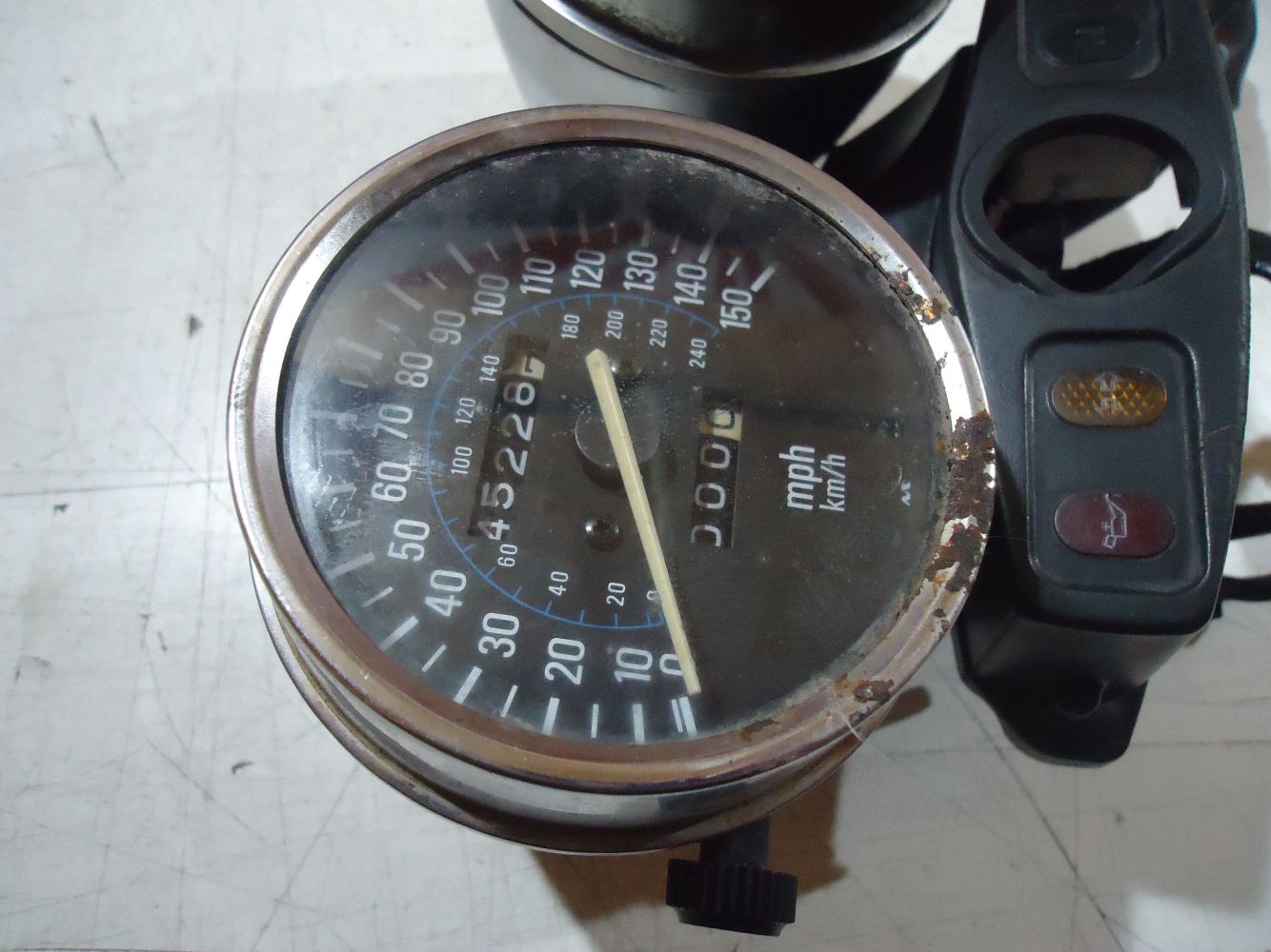 Kawasaki ZR 750 Zephyr MPH Clocks, good see pictures for overall condition & any age related marks, some pitting to the chrome, showing 45,228 miles
